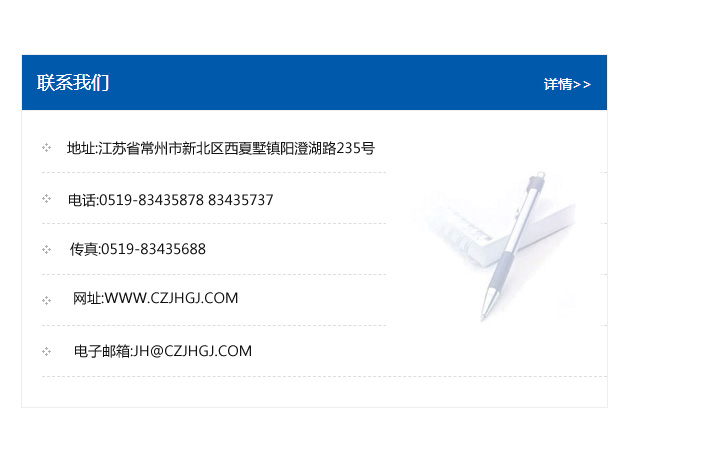 地址:常州市新北區友邦商務大廈1幢16、17層  電話:0519-85101652  傳真:0519-85112595  郵編:213022  網址:www_cz-jiayue_cn.jiangxikangtaitang.com  郵箱:xiajifengaa@163.com